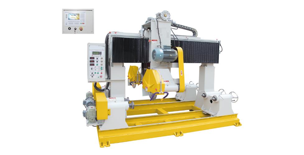 本機操作簡單,采用框架式整體設(shè)計,微電腦控制,光學測量控制;可切割任意形狀的圓形欄桿、圓球、柱座、柱帽等旋轉(zhuǎn)體型石材;本機的設(shè)計改進了其他機器手工加工不均勻、消耗大、精度低的缺點,并具有自動控制的優(yōu)點,每個尺寸調(diào)整后,型材從1個同時增加到8個,節(jié)省人力,提高生產(chǎn)效率。
